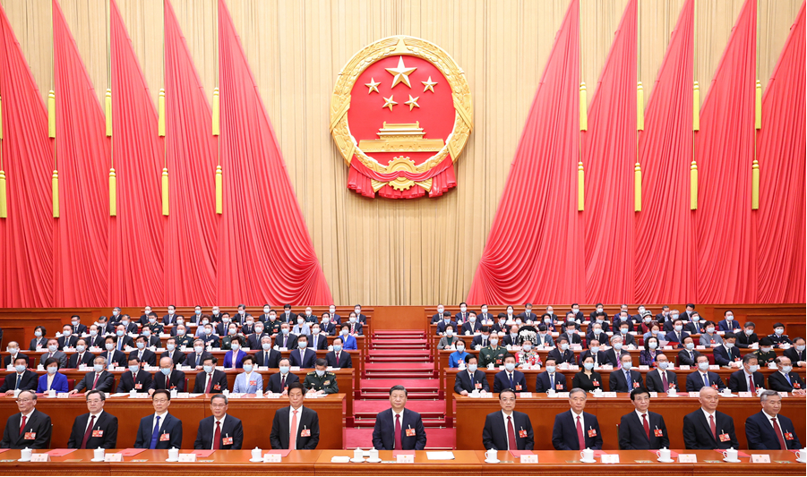 习近平栗战书汪洋李强王沪宁韩正蔡奇丁薛祥李希王岐山等在主席台就座,李克强作政府工作报告 赵乐际主持大会,听取关于立法法修正草案的说明等